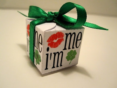 But... I did have Print Explosion and decided after much contemplation that I could make something that might work. I thank her for the inspiration. Mine isn't as cute as hers, but it works and Miss Boo thinks it is divine with the Hershey Kiss in it. What a fun gift for St. Patty's Day that doesn't cost much.